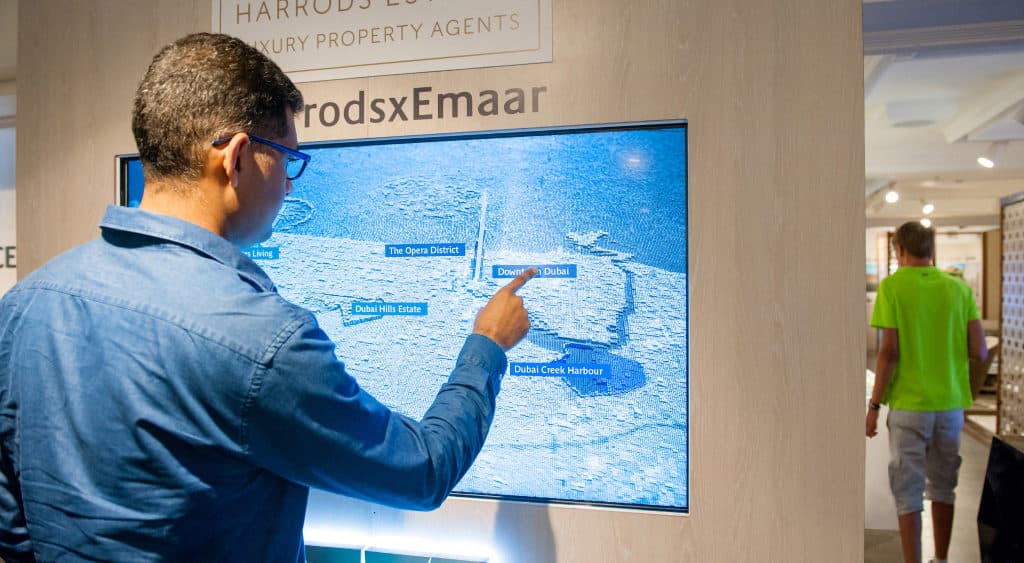 Our interactive procedural visuals highlighted eight of Emaar’s iconic developments. By dragging a finger along the screen, a customer could pull each Emaar project up from the earth and learn more about it.
